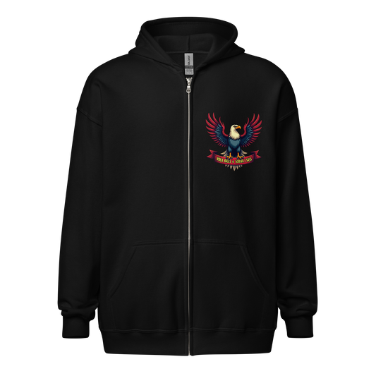 Felpa nera con zip “Vola bass e schiva i sass”